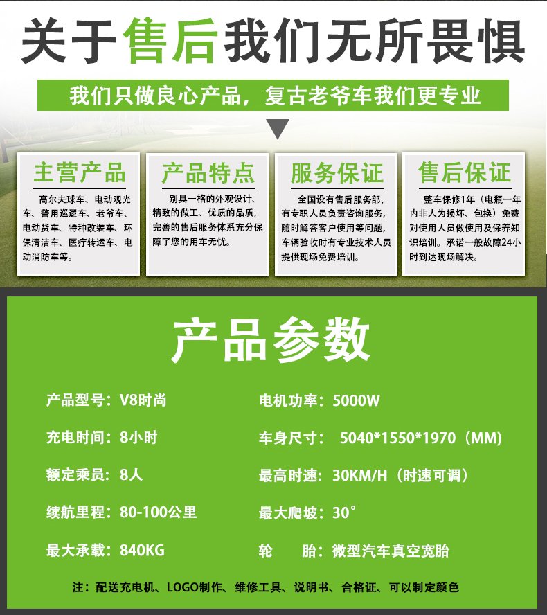 V8(時尚)電動老爺車景區旅游電瓶車游覽車酒店樓