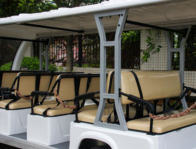 細節決定品質,輕盈靈巧的駕駛室,多功能組合開關。 液壓雙回路前碟后鼓式制動,麥弗遜式獨立懸掛,螺旋彈簧+筒式液壓減震。 鋼板彈簧+筒式液壓減震式非獨立懸掛。 解鎖觀光車