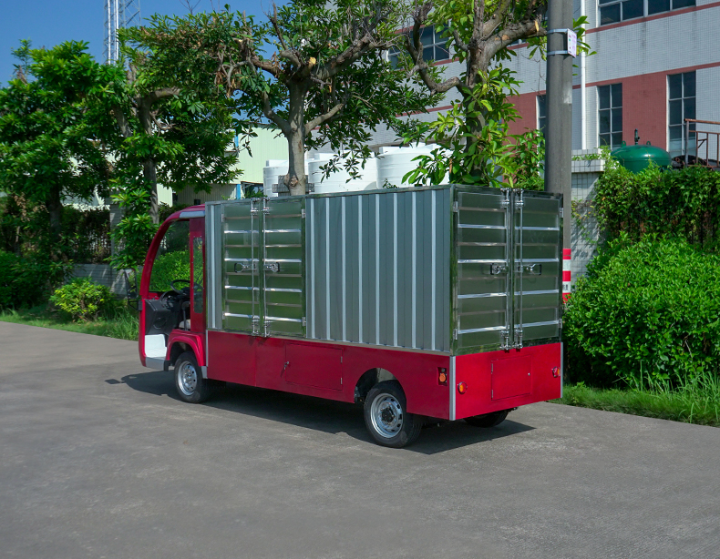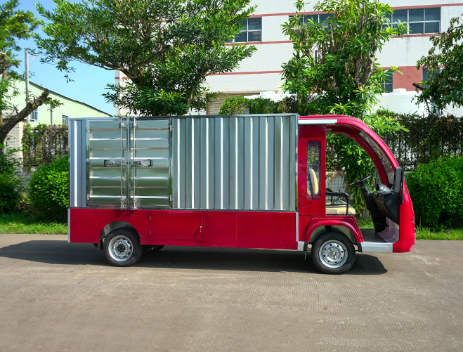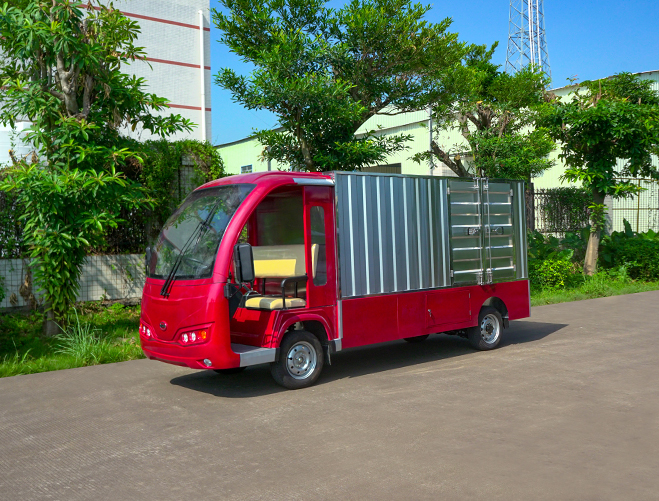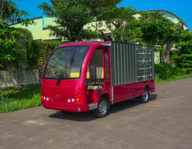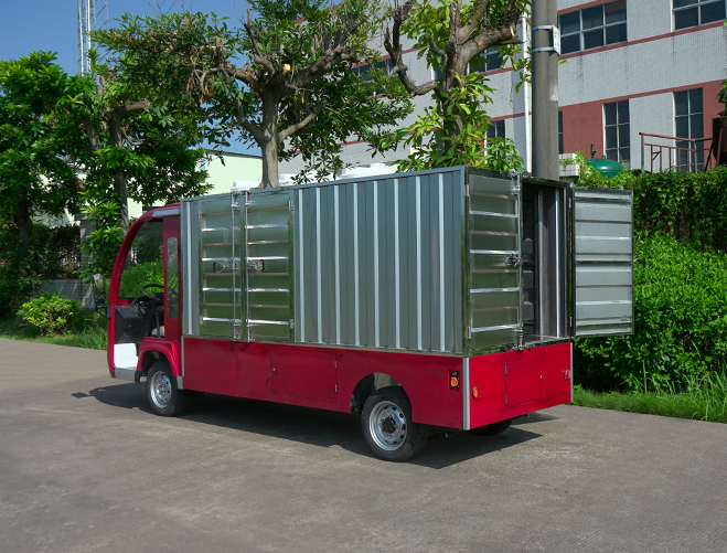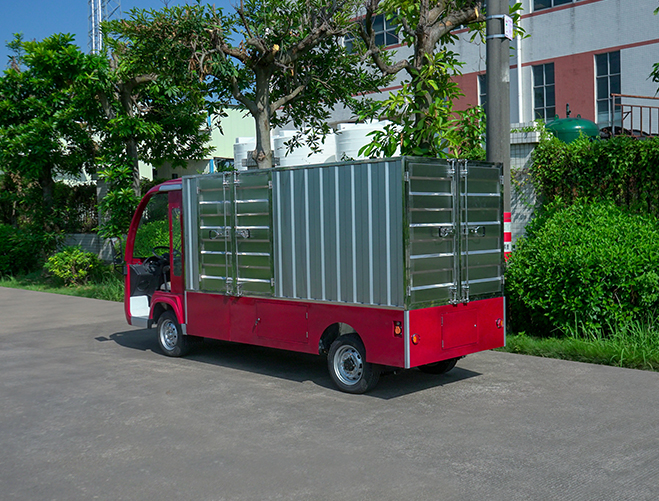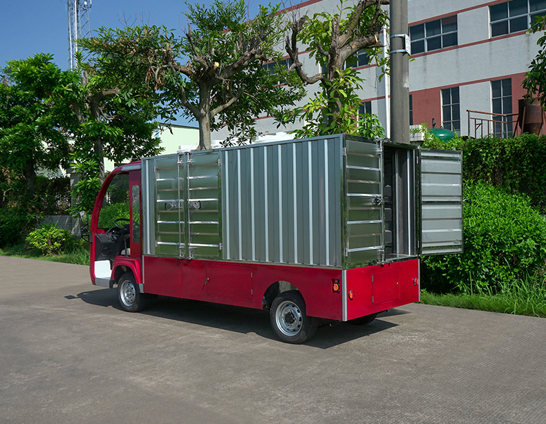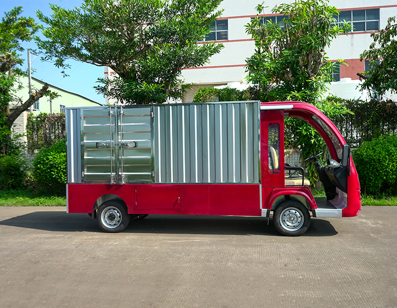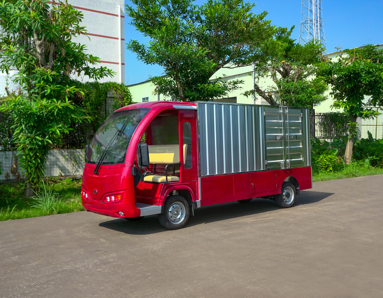 T14B-S深紅色廂式封閉貨車四輪電瓶觀光車廠內(nèi)轉(zhuǎn)運(yùn)車定制平板拉貨車